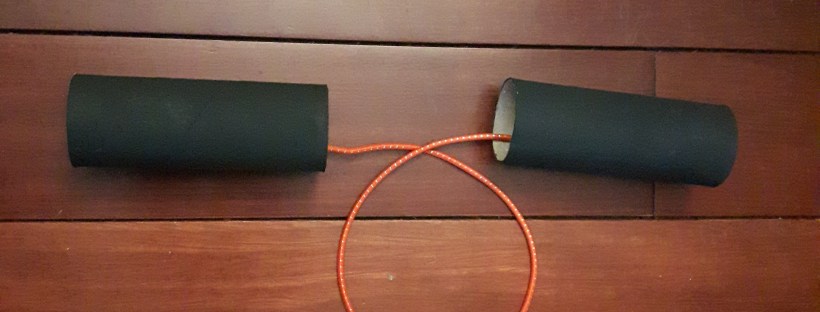 We had a Ninja Party (post coming soon!) for my son’s 7th Birthday. Obviously having a weapon was a necessity. We made Nunchuks to give every child upon completion of their Ninja Training Course. It was quite simple and fun to make these! And they looked pretty convincing, even though they were only toilet paper rolls and elastic cord!