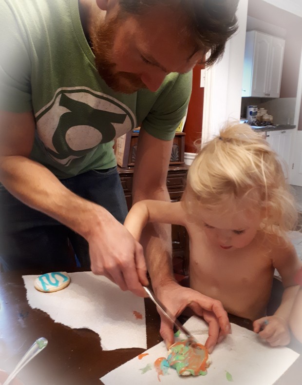 - As your kids ice the cookies take away each completed one. This prevents them from getting eaten or licked any more than they probably already have been.