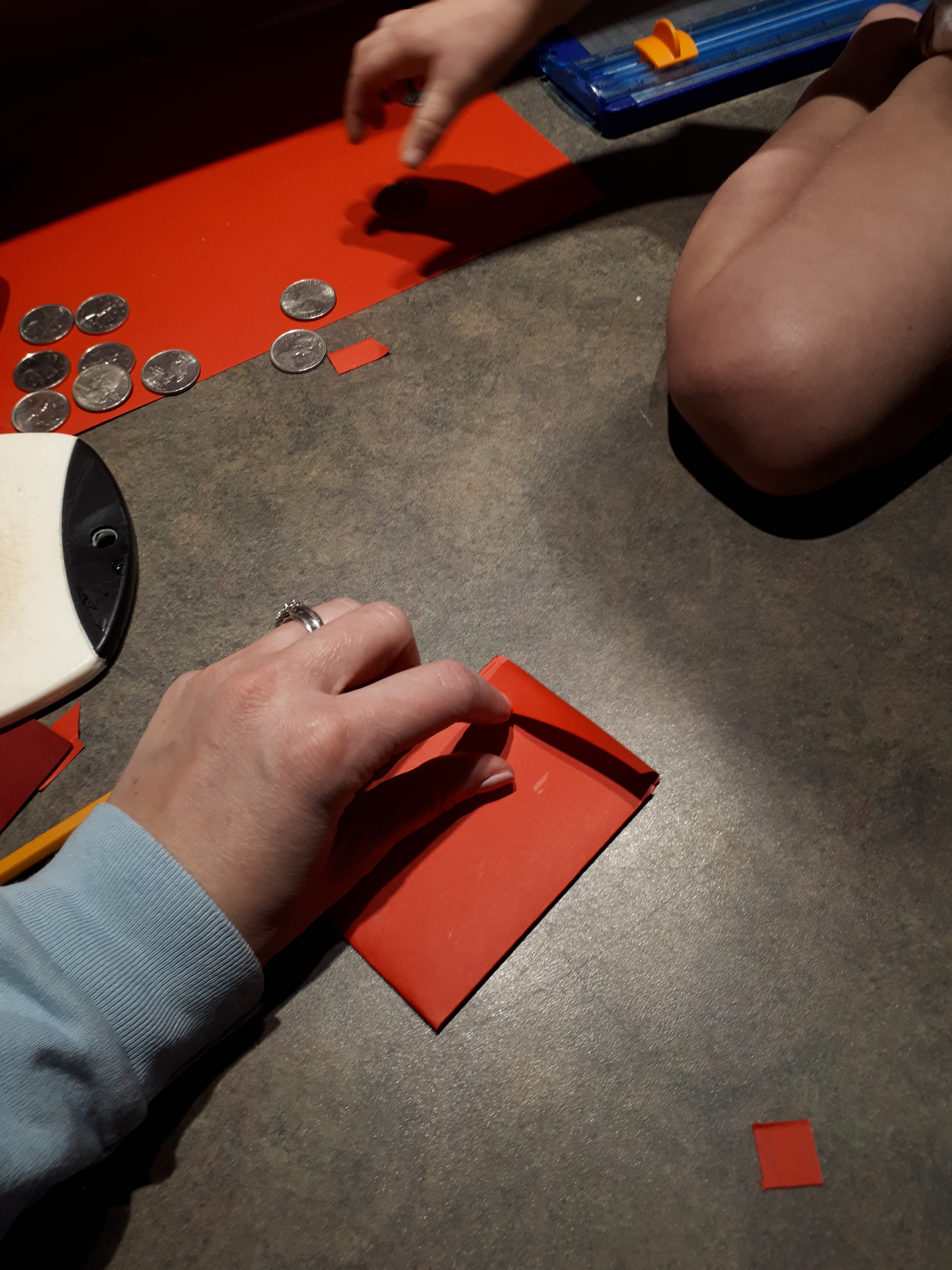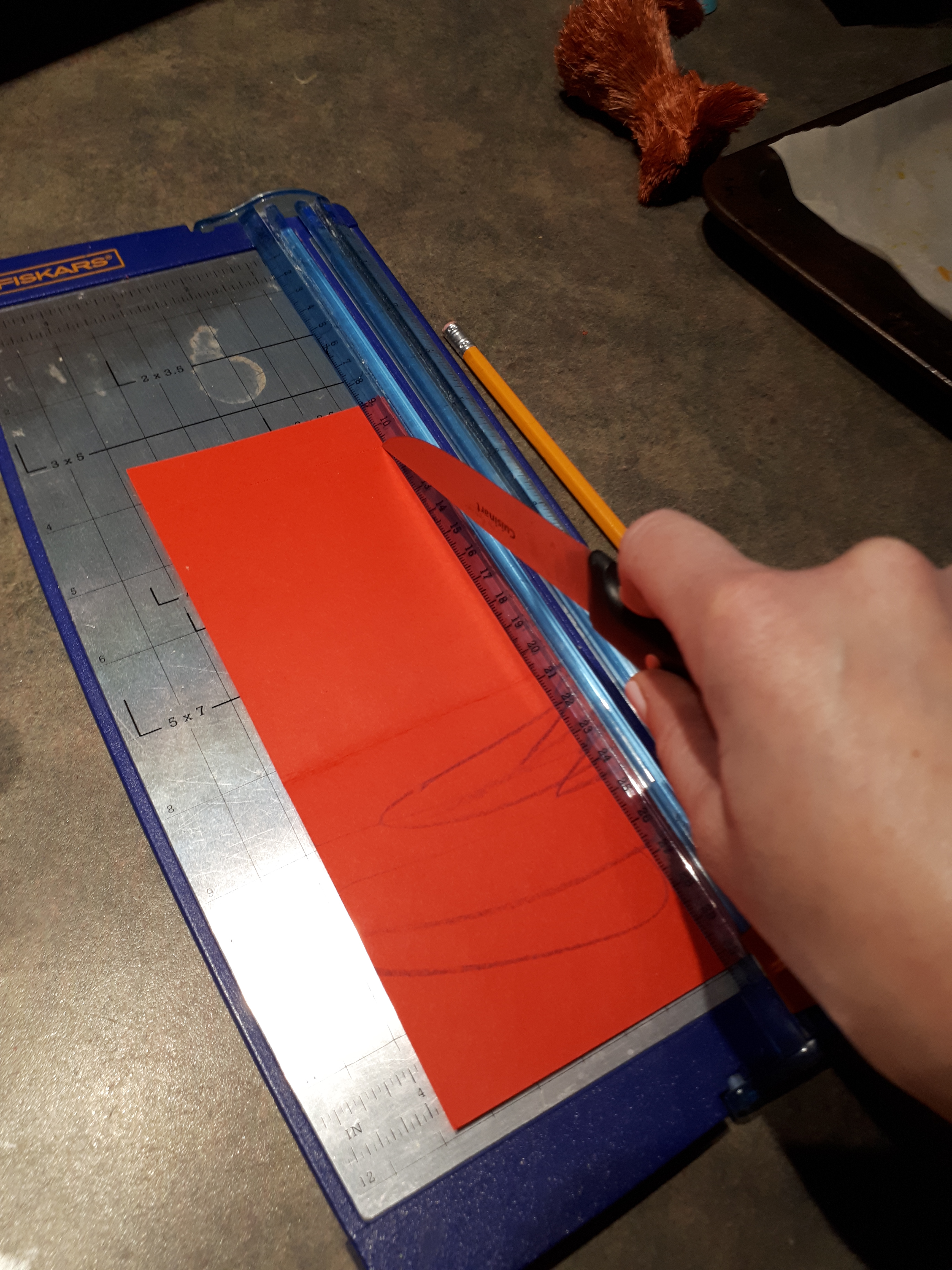 - Red card stock (this is a great opportunity to use some of that paper that got scribbled (I mean art) on just one side)