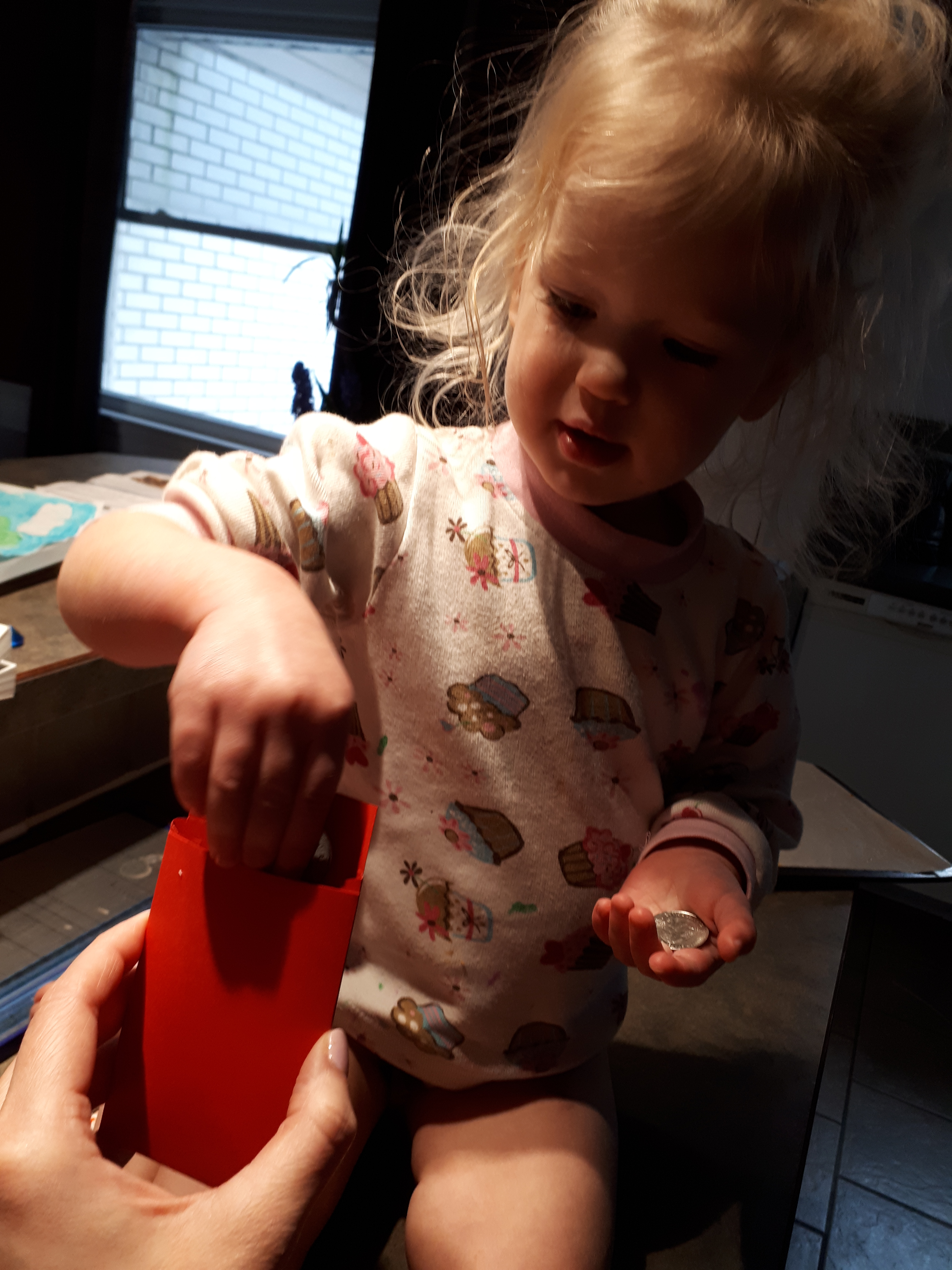 - Money (traditionally you are supposed to use crisp new bills, but since this isn’t actually our holiday, and since our smallest bill is $5 we opted for coins. Each of our children will get a dollar total)