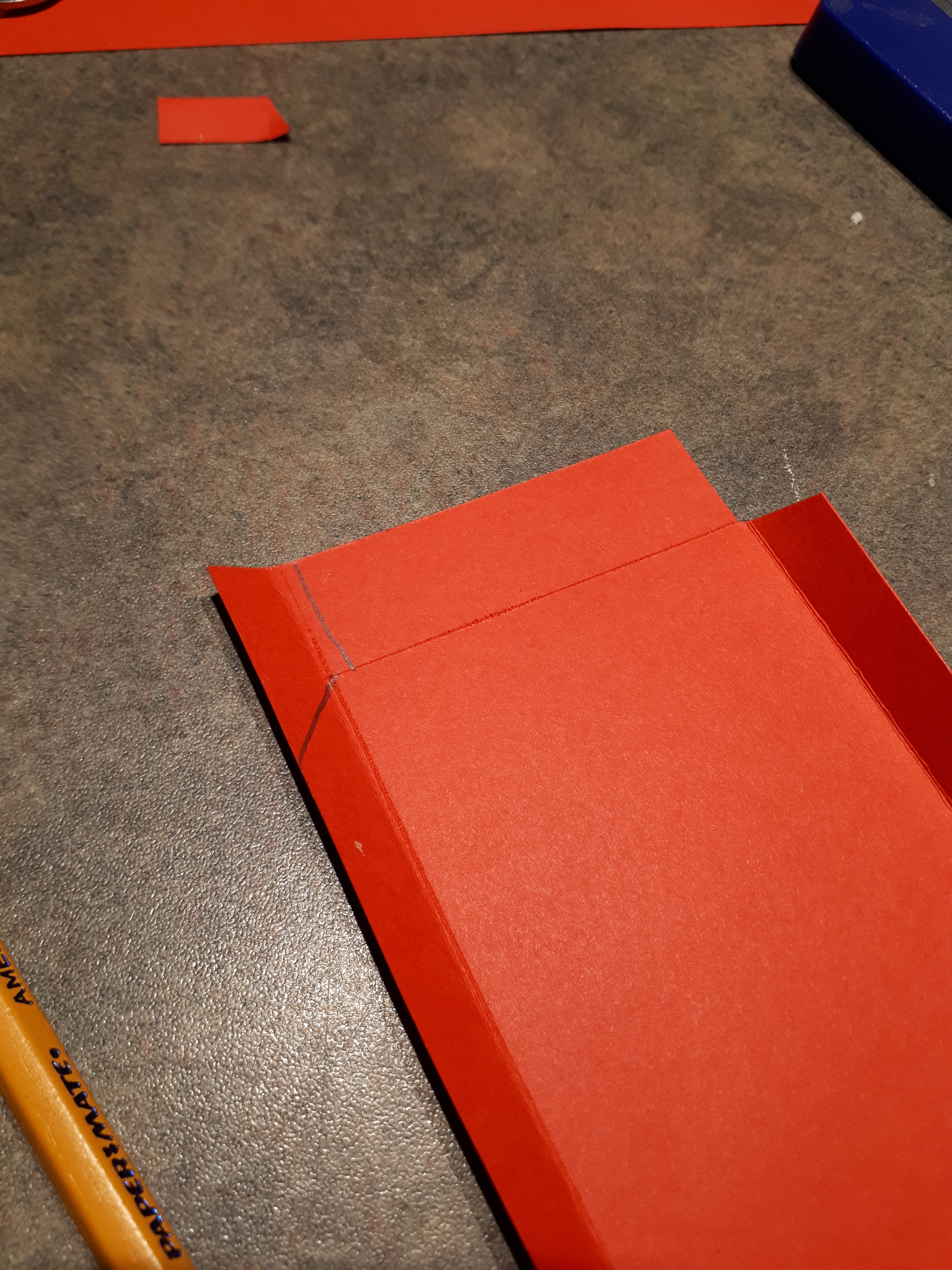 5. Then score a line just above where the two pages meet to make it easy to fold over that “lick” part.
