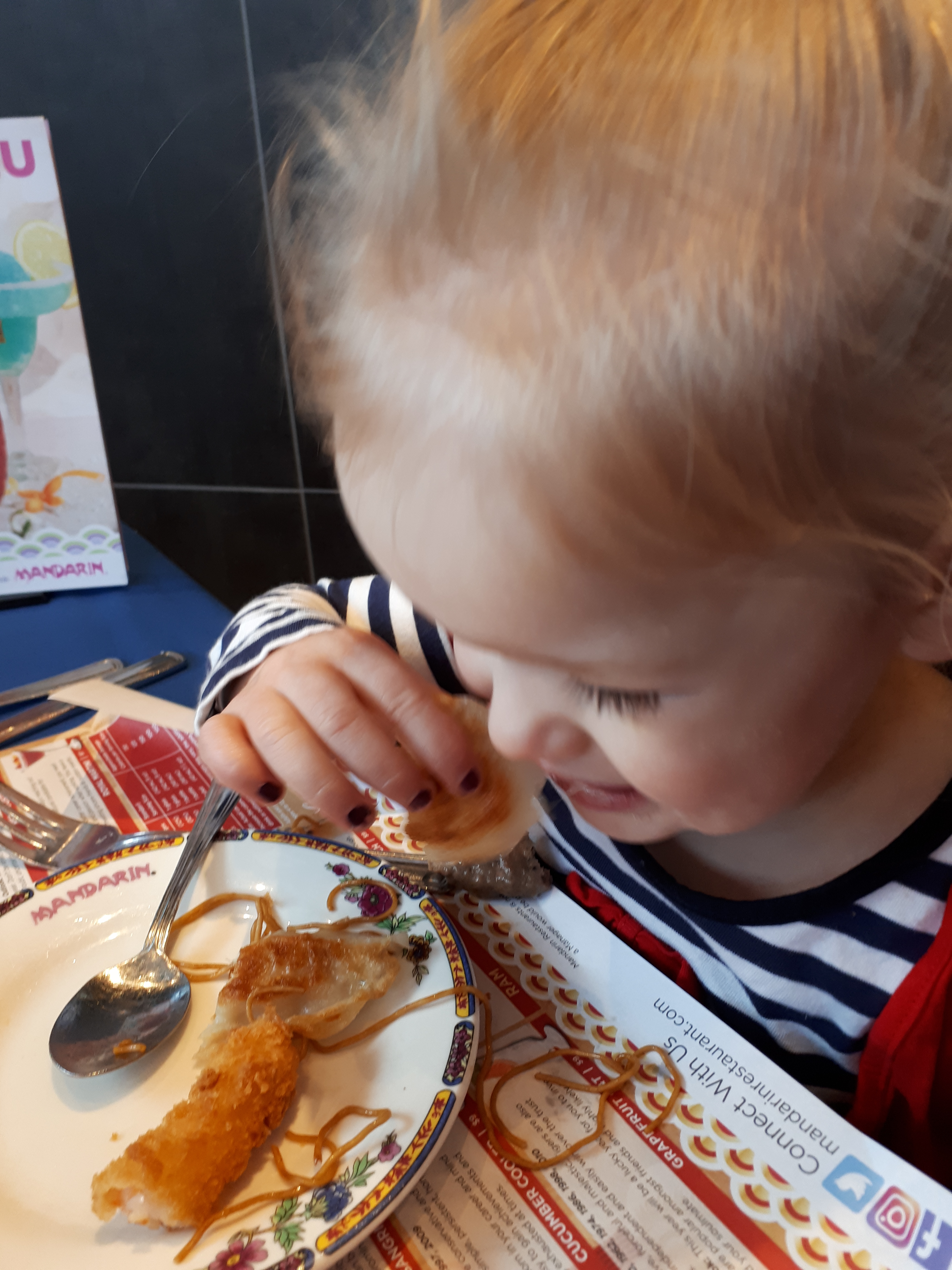 Oliver showed us decorations (such as the lanterns), showed and explained to us the zodiac place mats, and taught us about the clothes they wear. He showed us his blue shirt and explained that they wear bright colours for Chinese New Year. Another tradition is to get new clothes for Chinese New Year, because they often weren’t wealthy enough to have new clothes at any other time of the year. Oliver then took us to the food! He showed us all the labels at the buffet that indicate that a dish is a traditional Chinese New Year food. Some of the foods with these special labels were dumplings, egg custard tarts and Siu Mai. Oliver gave us some zodiac place mats and fortune cookies to take home for our Chinese New Year the next day! When I was planning this excursion ahead of time I was undecided about whether we would stay for lunch, or just tea. The kids were begging to stay for lunch, and since it was lunch time, and we were having so much fun, we decided to have lunch at the Mandarin.