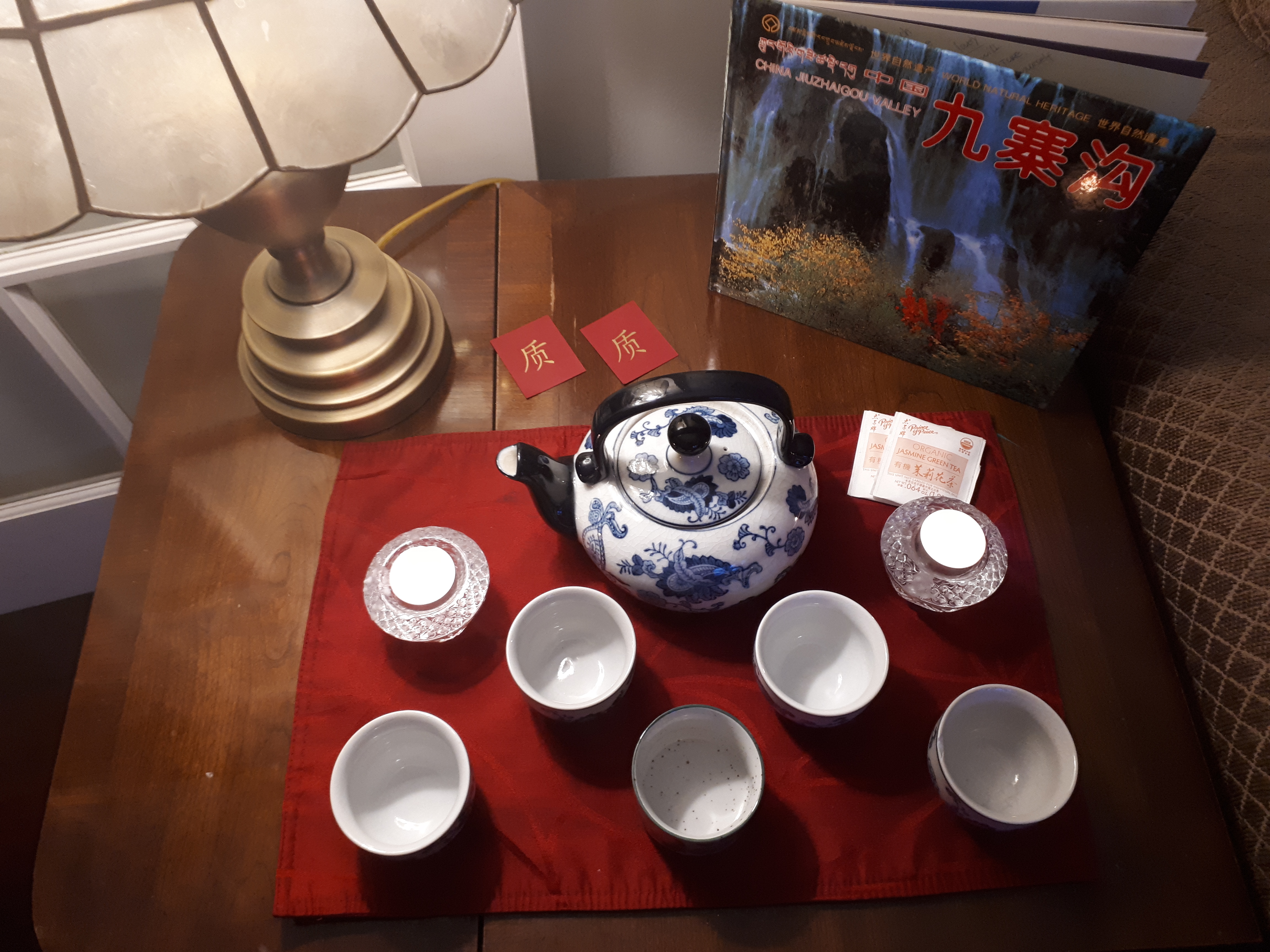 After supper we all had a little cup of jasmine tea out of this set. It was so delightful- even though the kids didn’t actually like the taste of it. The book in the background was given to my husband by the family he stayed with in China.