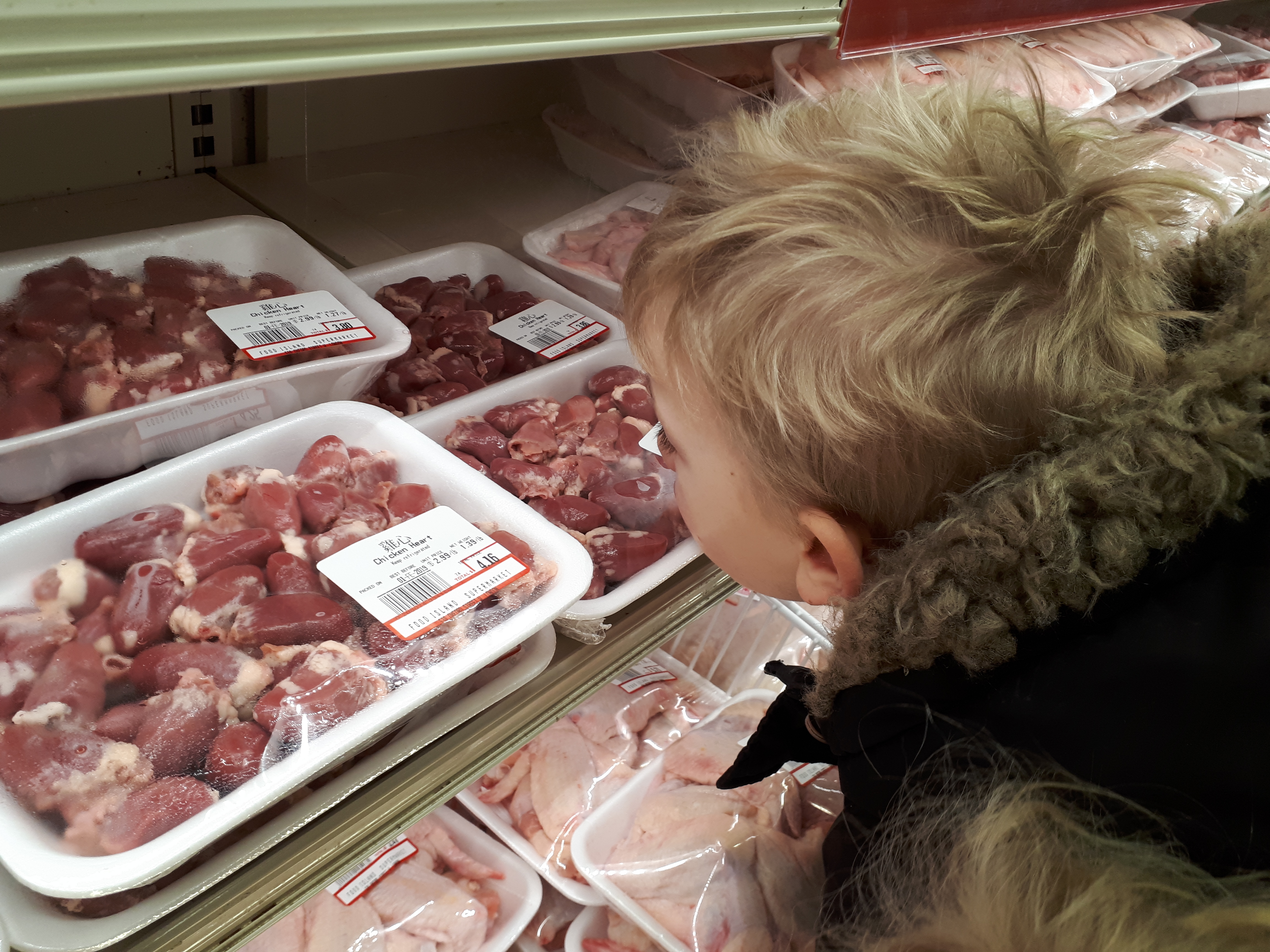 On Saturday morning we decided to go to our local Chinese grocery store to pick up some decorations, jasmine tea and cookies. There were so many different things to look at…for instance the fresh meat trays of chickens’ feet and hearts! We ended up picking up some frozen dumplings for lunch at the suggestion of a friend we bumped into at the store.