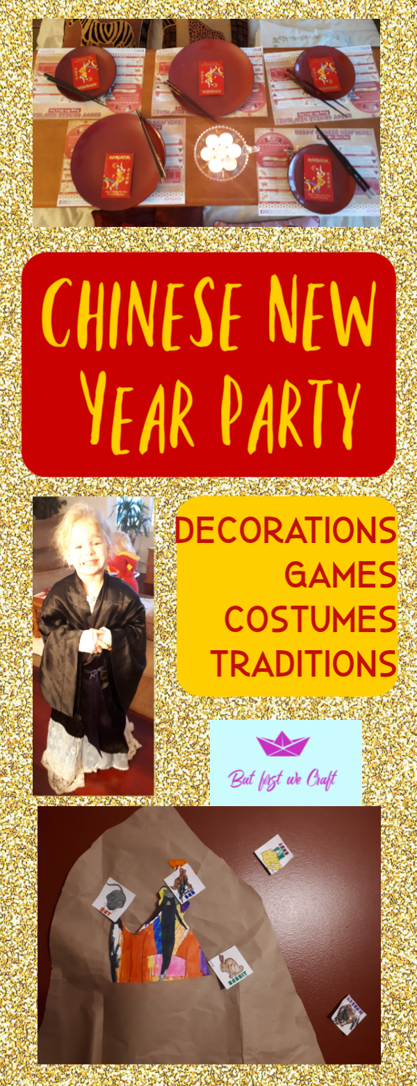 As I mentioned in the last post, at the beginning of our learning, we watched the Chinese New Year video by Panda Express. After we watched it I asked my kids what parts of it they wanted to incorporate into our party. My daughter said, “The man on the mountain.” She meant the part where the zodiac is explained. All the animals race to the emperor, who is on a mountain, to see who the first year, and so on, will be named after. I was a bit flummoxed by that request, but I came up with Pin Your Zodiac Animal on the Mountain. In our family everyone has a different zodiac animal, so we printed and coloured them, put tape on the back, and took turns trying to get our animal the closest to the emperor. Of course we were blindfolded and spun around in circles before attempting. If members of your family have the same zodiac animal you can either write names on the animals, colour them differently, or pick a different animal.