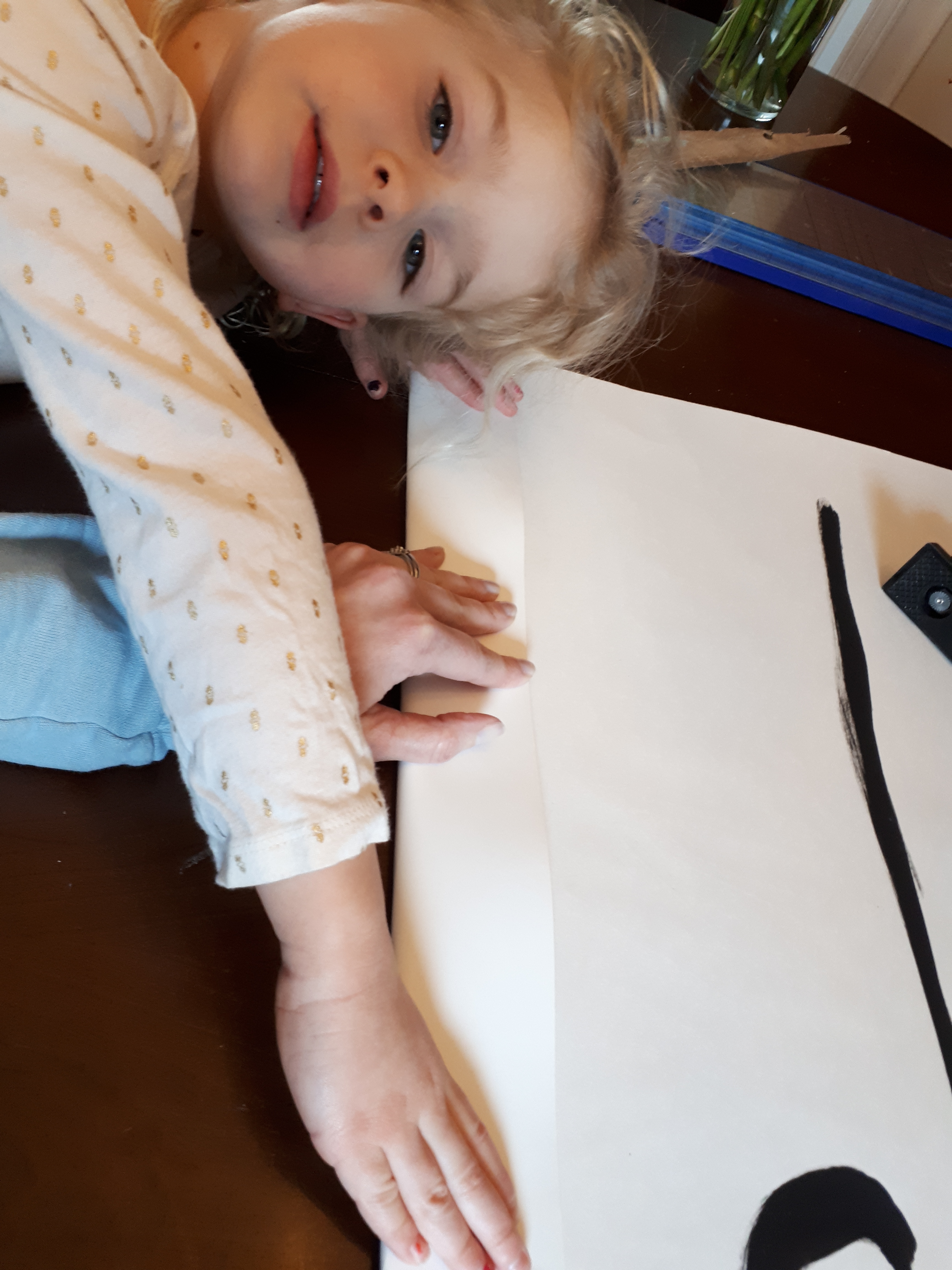 10. Spray paint one side. We did black for the cross-guard and handle and gold for the blade. (These pictures were taken by my 7-year-old son. 😊👩👦 ) Let the first side dry, then flip it over and paint the other side. I used an old cardboard box to guard the part I painted while I painted the other colour.