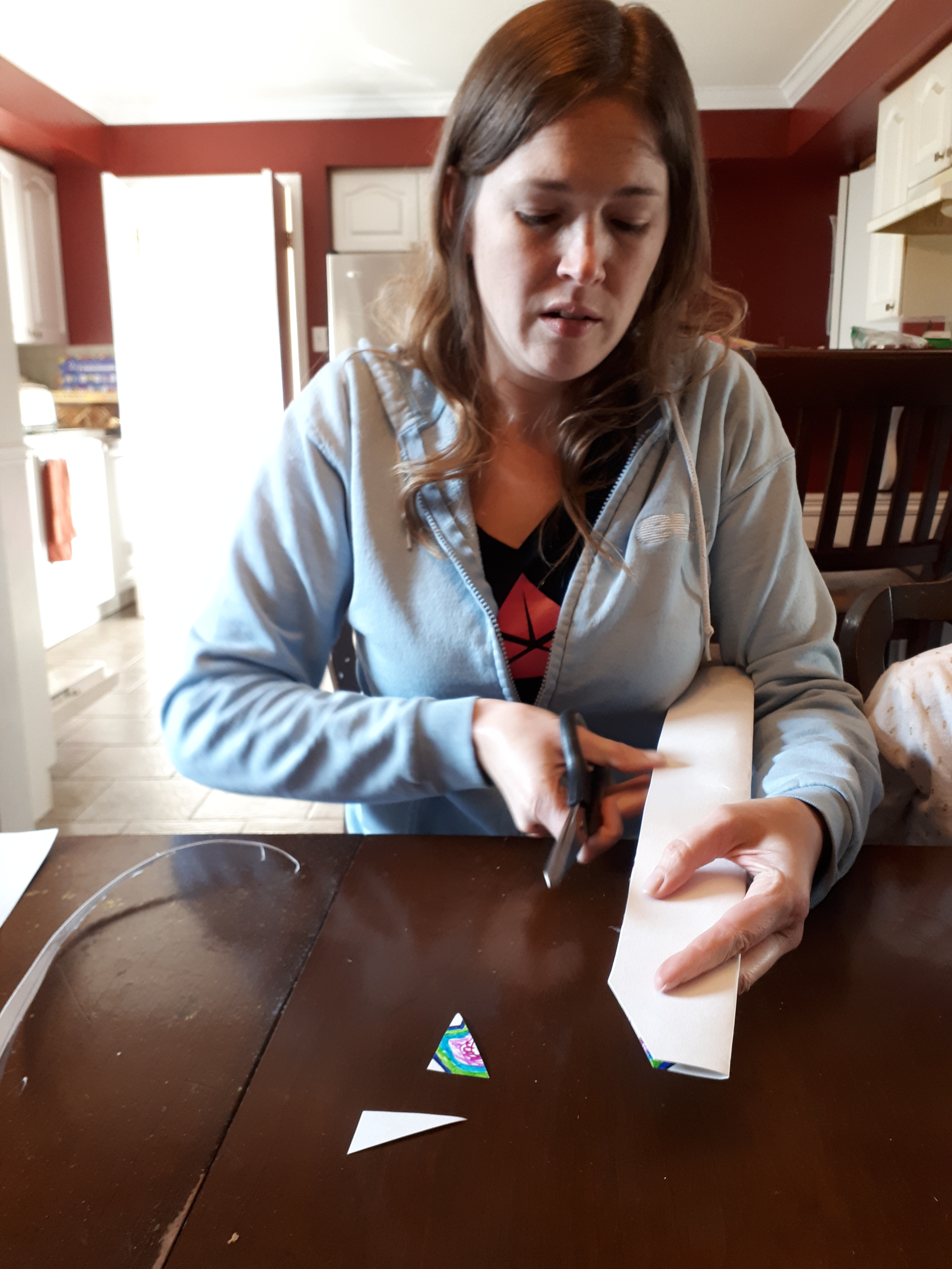 3. Cut along the line. This is a good job for kids, though it gets a little tough the deeper into the cut you get. If they do a bad job of it, you can just trim the edges and it’ll be great.