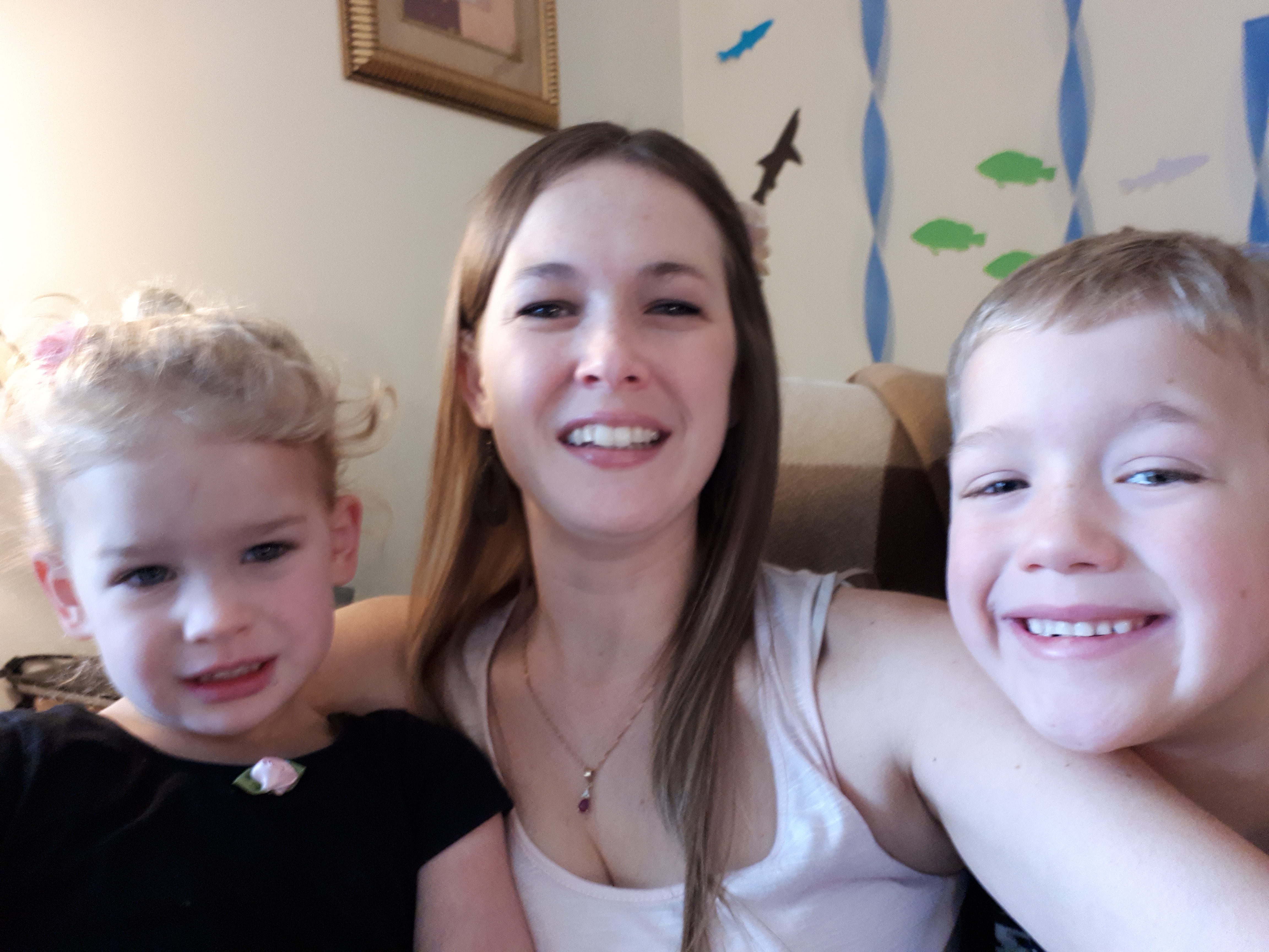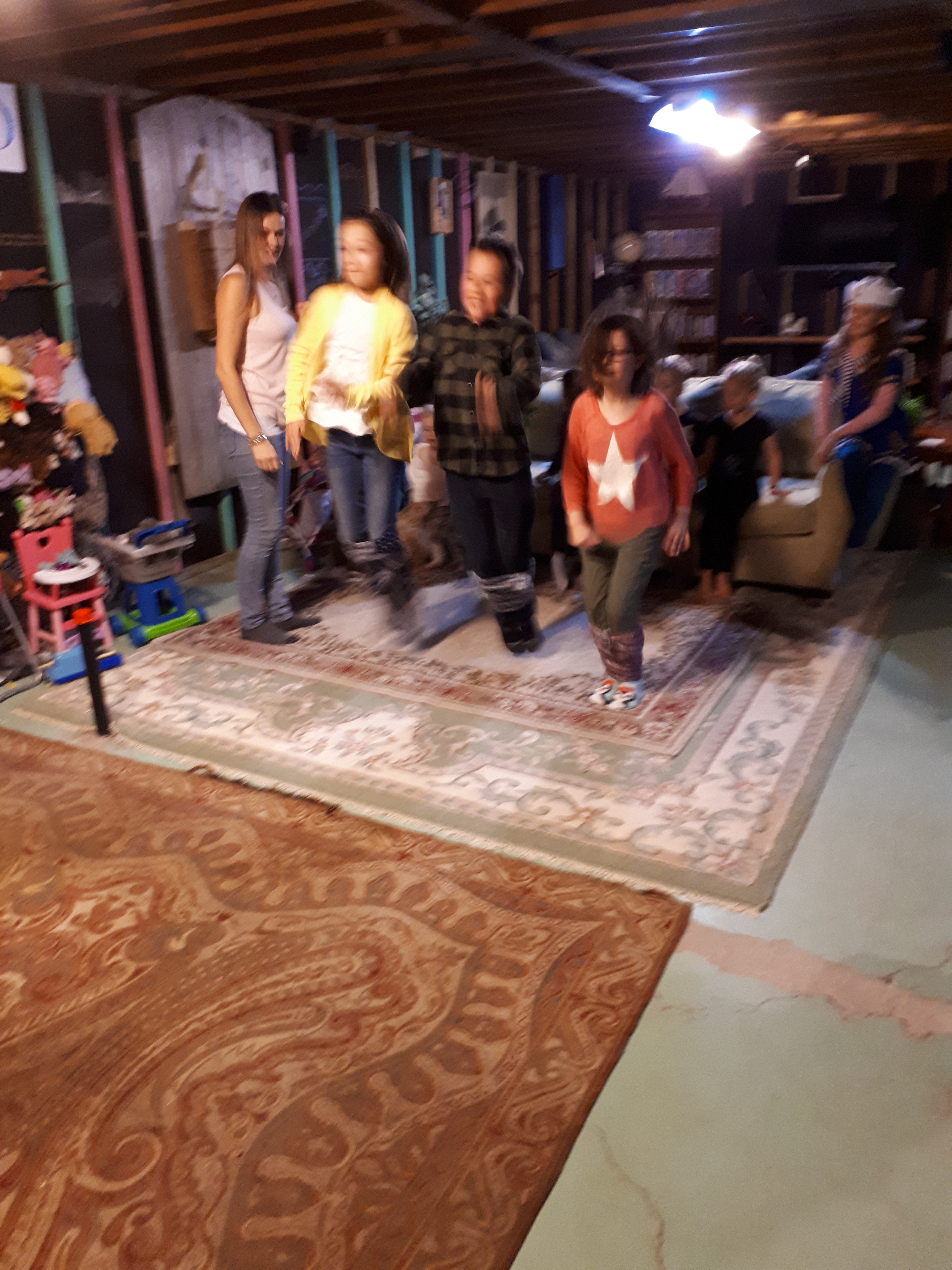 Tie up the kids legs with scarves. If you do it right you can make it look like a mermaid tail. I wasn’t nearly as good at this as was my sister. Oh well.