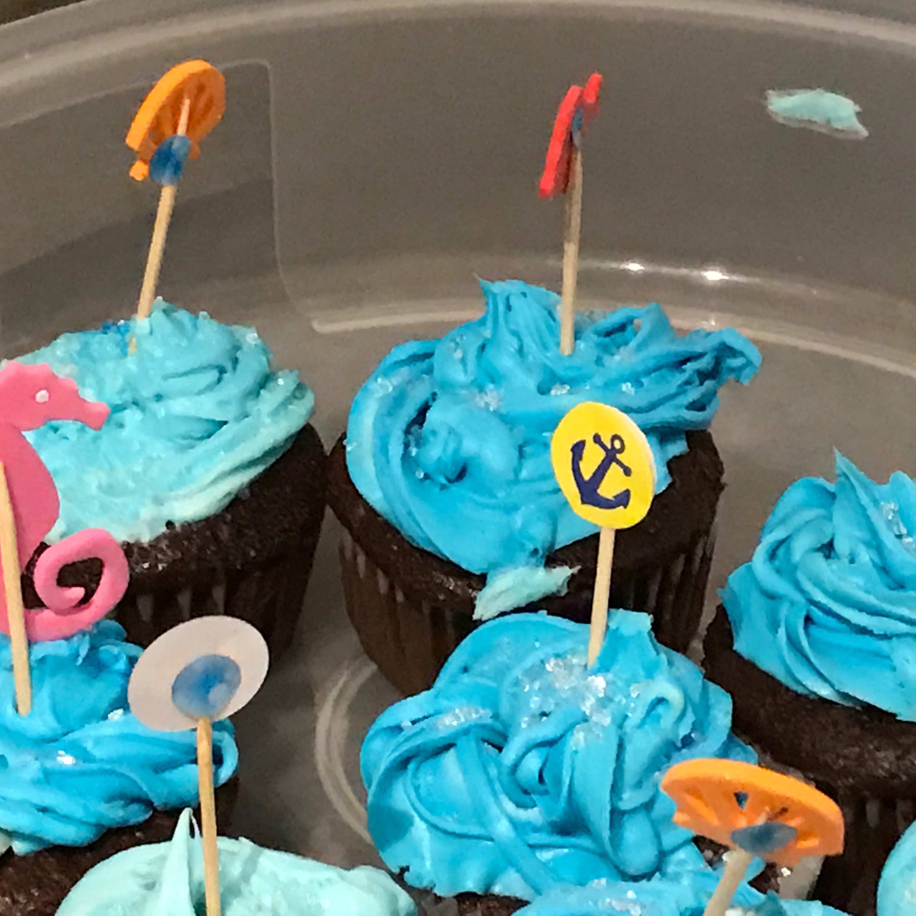For drinks we had blue Hawaiian Punch with little umbrellas in them. Some kids decorated their cupcake with their umbrella. Adorable!
