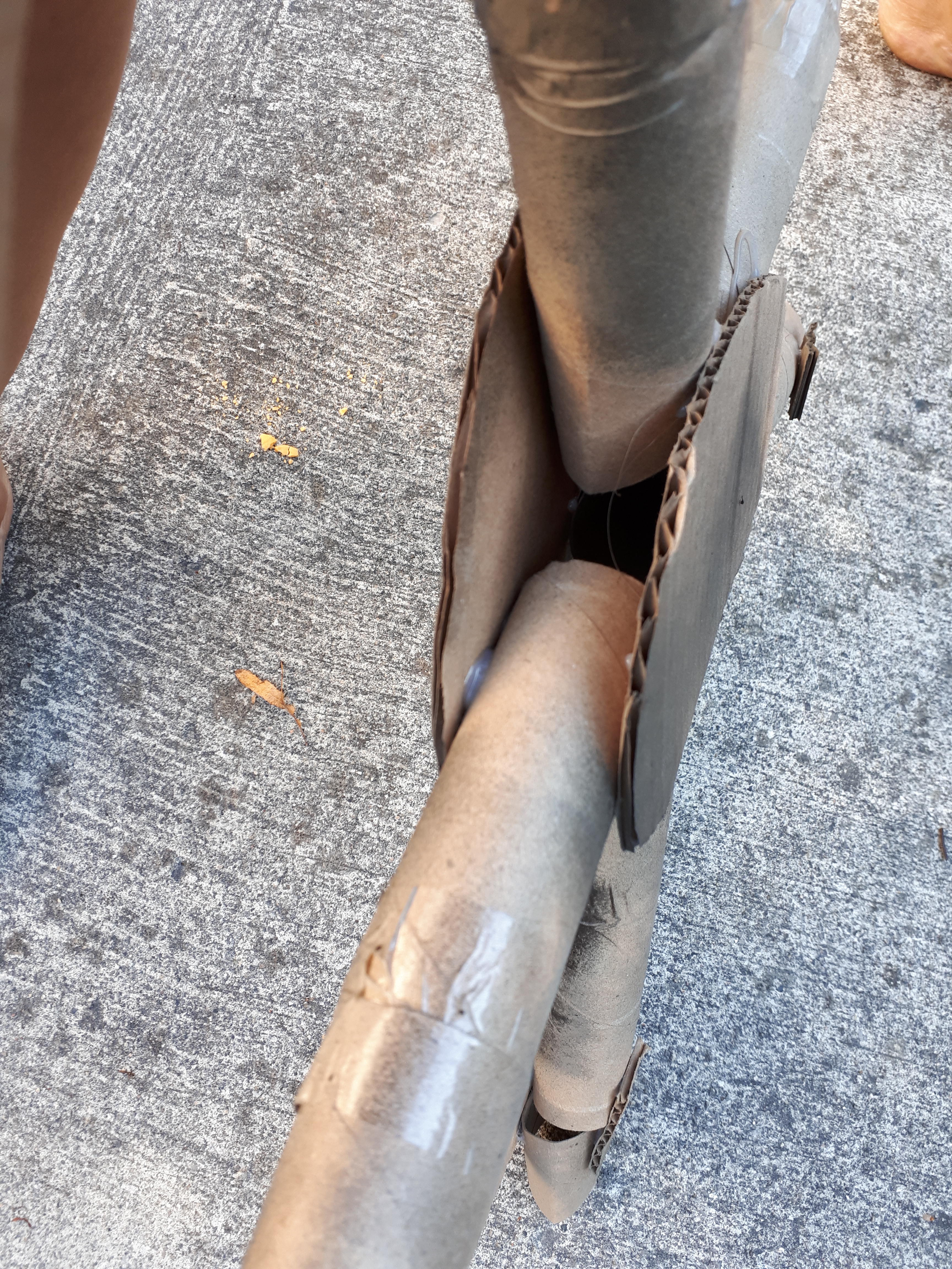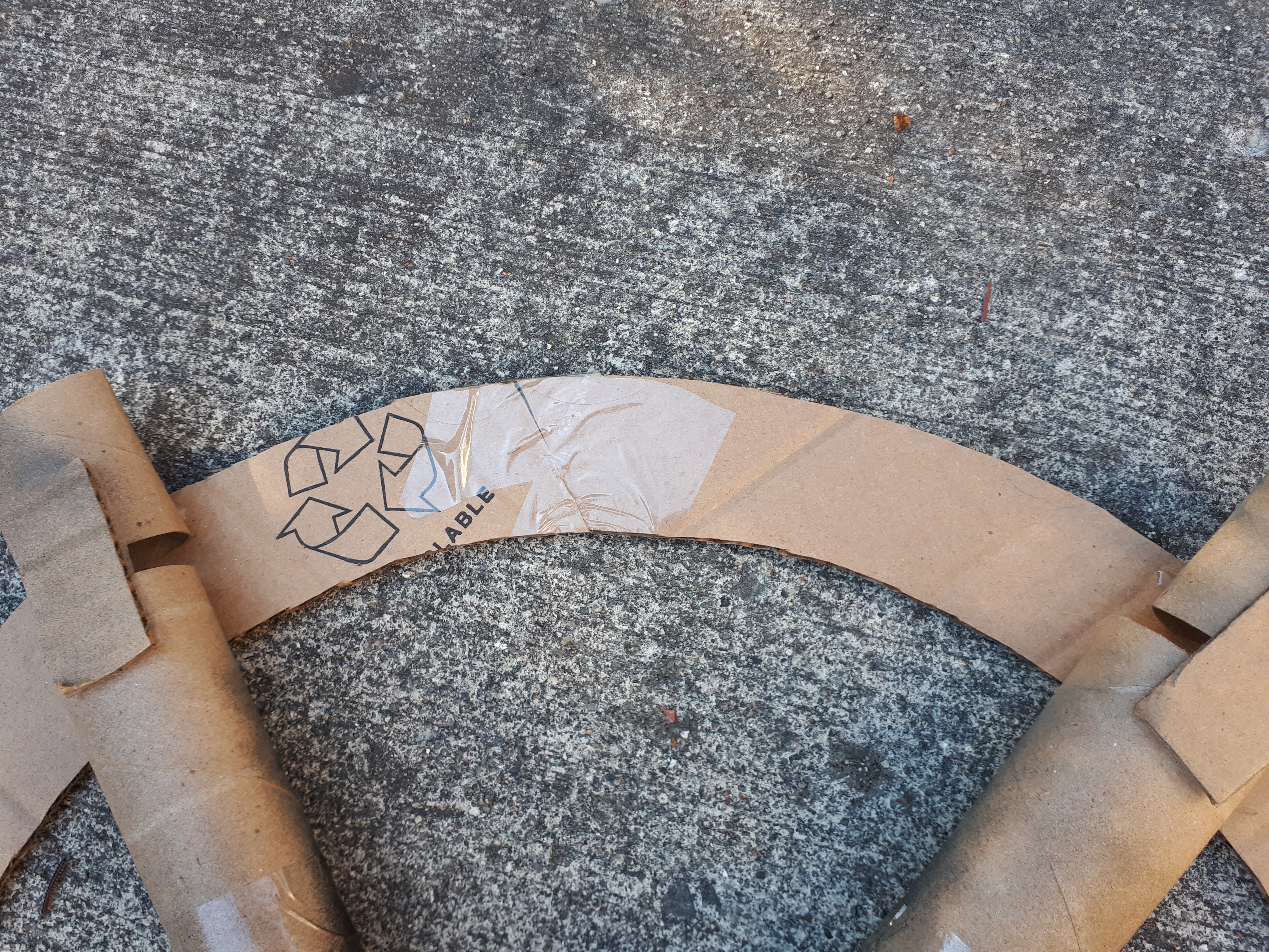 3. Cut two smallish circles out of the corrugated cardboard. These circles will attach all the toilet paper rolls together at the centre of the wheel. The one at the back won’t show, so it doesn’t have to be a real circle (thankfully! Look at mine in the picture under the “Instruction” heading!😂). In the picture above you can see how much space is in between my spokes.