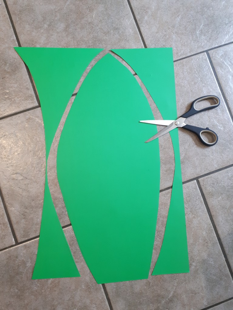 - Cut out leaves from a piece of green bristol board. For ours, we got three leaves out of one piece of bristol board.