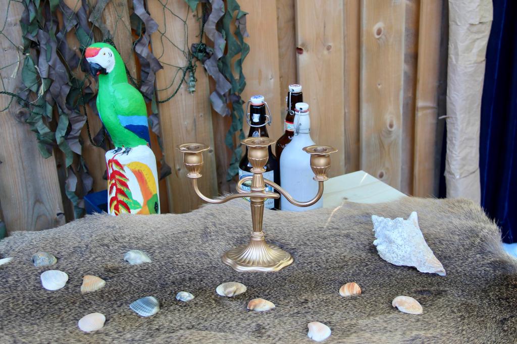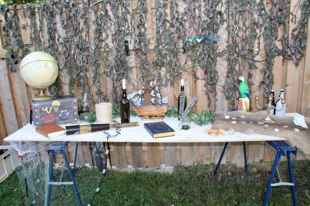 I had a huge amount of help with this from my husband, God bless him. We have a sailboat, so he hung some old sails from the trees and fence to look like the ship sails. My parents own a moving company, and so have lots of boxes. We just built a bunch of them and had them strewn around the ground. This picture was taken before my Mum got here, so when she arrived we added a bunch more- I think you’ll be able to see in the later pictures if you want a better idea.