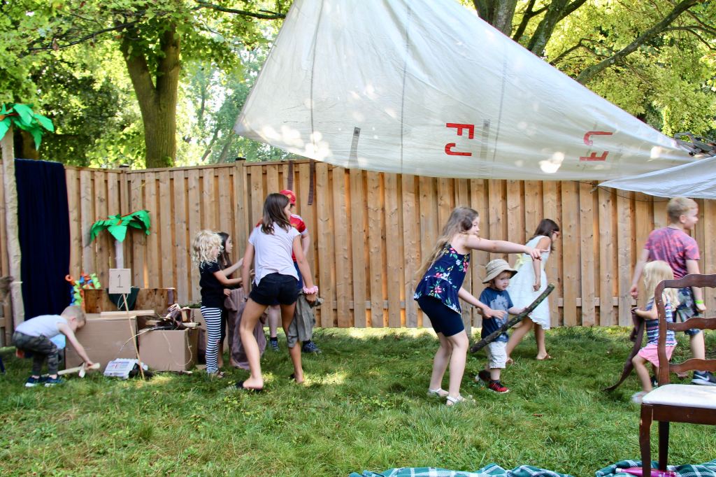 So that’s it! That was our Robinson Crusoe Birthday Party. It was so much fun. It allowed the kids quite a bit of time to just run around and do their thing. They all played with the shelters after the party was over too.