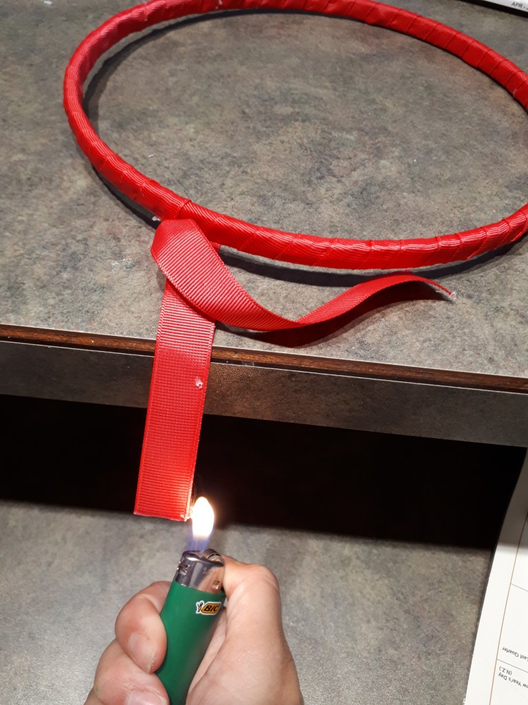 4. Use a lighter or matches to melt the end of the ribbon to keep it from fraying.