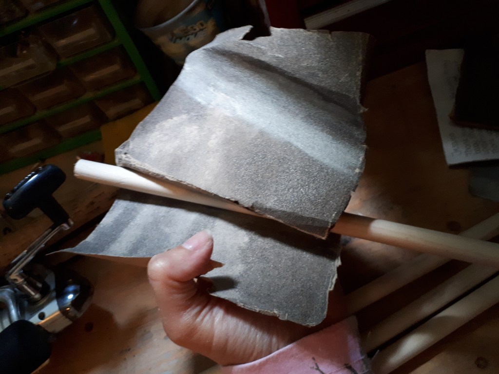 2. Sand the dowel. I sanded the ends because they were really rough from sawing them. While I was at it I decided to sand the rest of the dowel. This was likely not absolutely necessary, but it felt a lot softer afterwards and only took a minute.