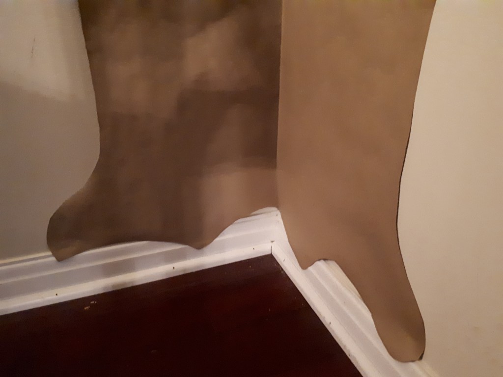 Measure how tall of a trunk you want. Mine is about 4 feet tall. Take your packing paper and lay it on the floor or a big table. Make your trunk almost the width of the packing paper, cutting it so it tapers out at the top and bottom to form roots and branches. At the bottom of the trunk (the roots) just do little humps: