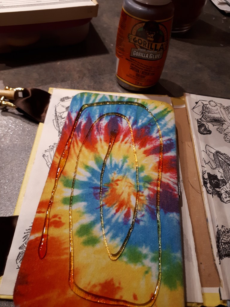 9. Clamp the wallet on. I left mine clamped for about two hours, then just let it sit for the remaining 24 hours of curing time. I was afraid it would dent the wallet if I left it on too long. Actually, the decision was taken out of my hands because my husband walked by, saw what I did, and took the clamps off because he was sure it would dent the wallet. Look at him looking out for me! #truelove