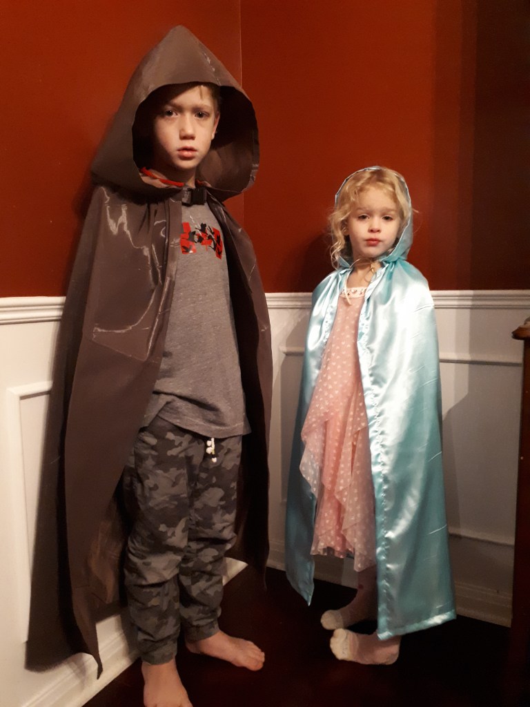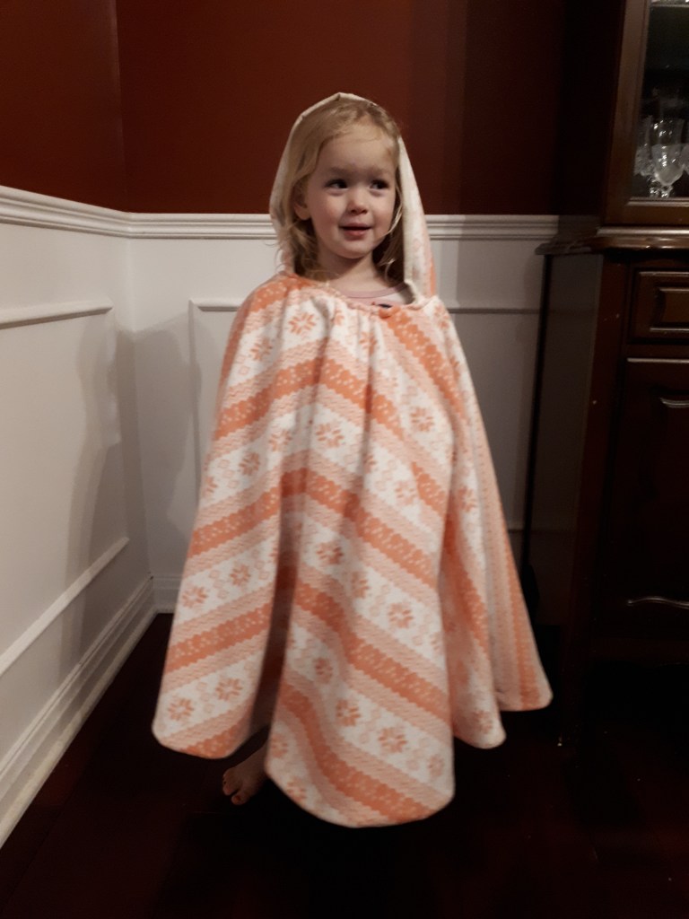 I made both the cape and the cloak exactly the same way, but my son insisted that his is a cloak, not a cape, and that my daughter’s is a cloak, so there you go. Fabric was seriously on clearance when I went to Fabricland, so I got my flannel for the car seat poncho for $4/metre, my son’s cloak material for $4/metre and my daughter’s cape material for $1.50/metre! And you should have seen their little faces light up when they opened them on Christmas morning. They all helped to make their own, and were allowed to wear it for the day it was completed, and they were each still so excited to receive it on Christmas morning. It was so adorable! If you want me to show you how to make a cape let me know in the comments and I’ll show you how to do it. If you’d prefer a cloak (haha!) let me know in the comments and I’ll show you how to make a cloak.