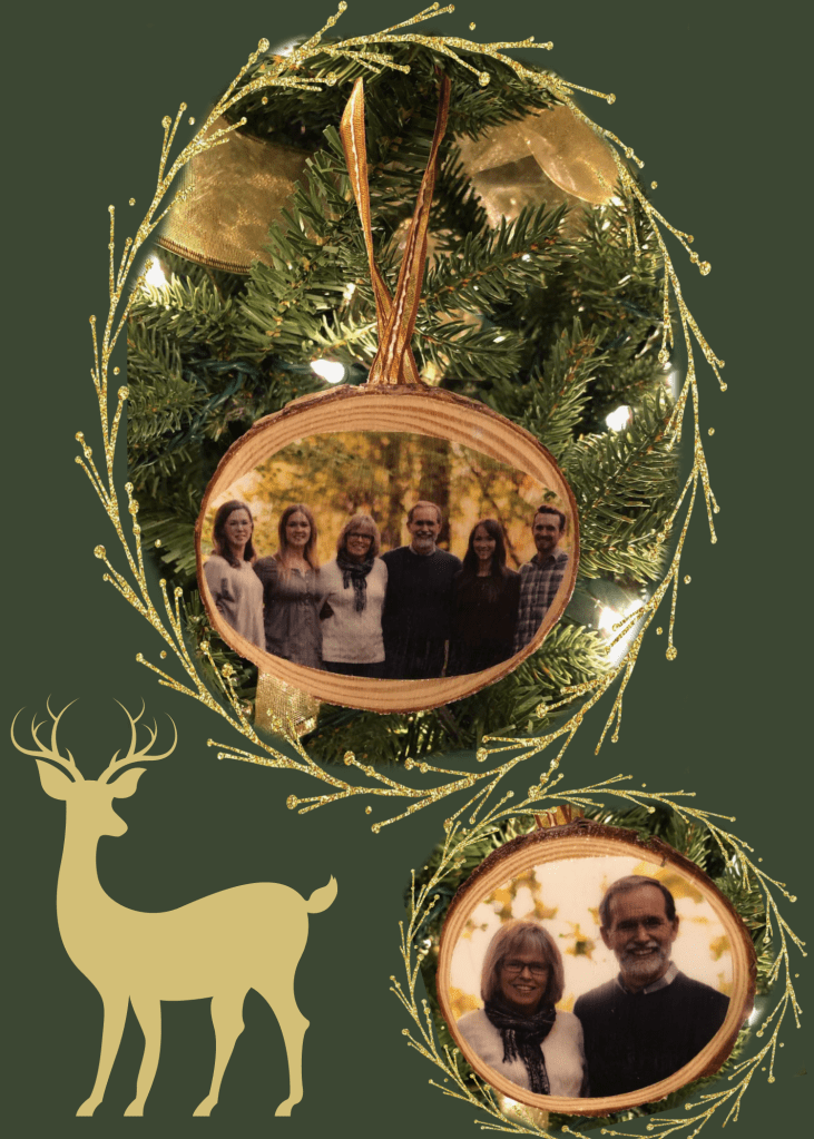 I made these wood slice Christmas tree ornaments for my parents. We had family pictures taken last year, so I used two of them to make these ornaments. There are lots of tutorials for these on Pinterest, but all you have to do is paint the wood slice with Mod Podge, put your trimmed picture on the slice, let it dry, then paint over top of the picture with Mod Podge. Allow to dry, then hot glue ribbon to the top so it can hang from the tree. They are fairly quick to make, and really look awesome. If I’d had more time or inclination I probably would have put “Merry Christmas” or a Bible verse on the back with my Cricut and adhesive vinyl. There are so many possibilities to personalize with these beauties! And they’re perfect for a rustic family Christmas!