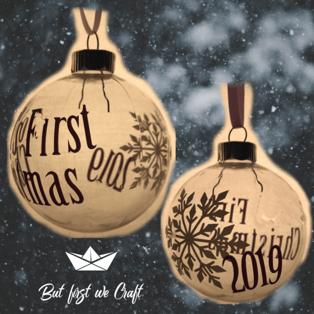 I bought got clear plastic ornaments and used my Cricut to cut “[Baby’s name]’s First Christmas 2019” from permanent adhesive vinyl, and put a snowflake on the other side. I was blessed with two new nieces this year, so I made them for these precious little ones.