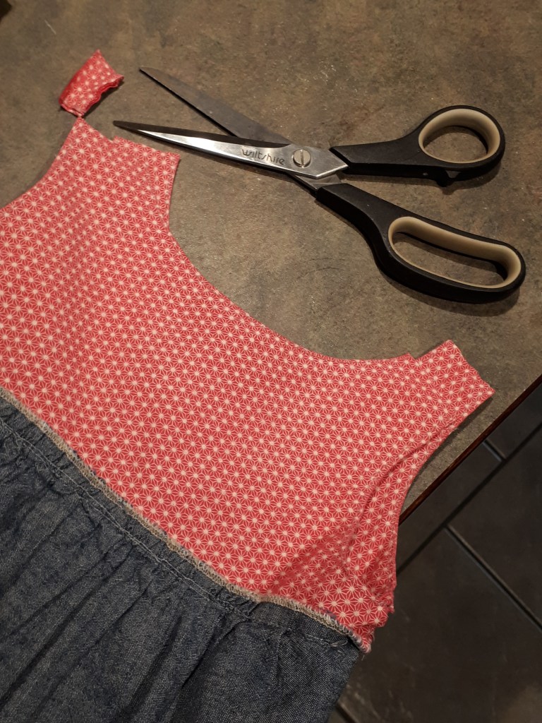 - Turn the darling little dress inside out. Cut the top of the straps off to make two open holes on each former strap.