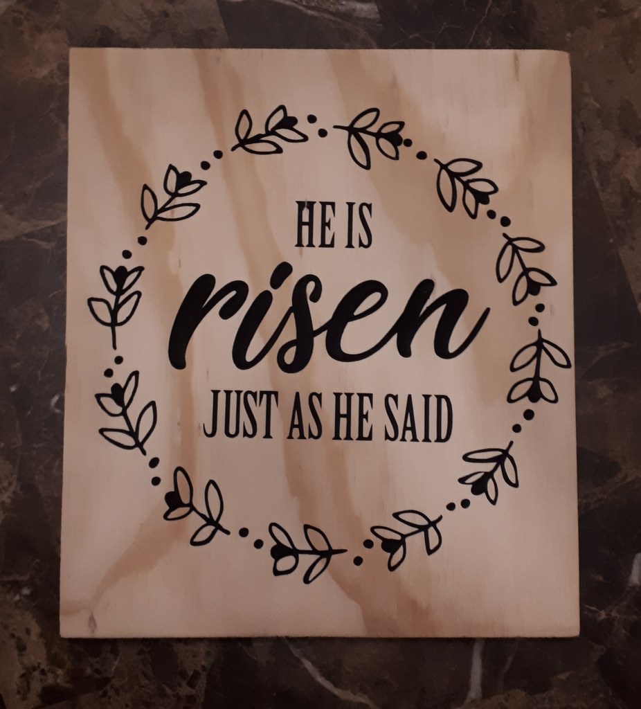 6. Make an Easter Sign. I just used plain plywood, but you could use fancy wood or canvas. I painted it using a stencil I made with my Cricut.