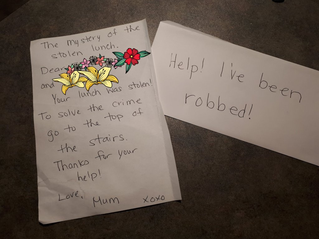 One awesome thing about these codes is that I can give them to the kids while I’m not even home. Yes, you read that correctly. I’m not even there when my kids solve these mysteries. So here’s how it goes: I write a letter that leads them to a code that they have to crack in order to find their lunch or snack. I have had appointments since restriction for covid-19 have lightened up. I have been to the hairdresser (hurray!), the dentist and the doctor and, obviously, haven’t been able to bring my children. The wonderful detail of this new situation is that my husband is working from home now, so I can leave the kids at home with him. Of course, he’s still working, so I have to keep them occupied while I leave. This was a conundrum, but now it’s problem solved! I usually give them some work to do, then reward them with a mystery. I leave an envelope somewhere they can find it, or I give it to my husband to give to them at an appropriate time.