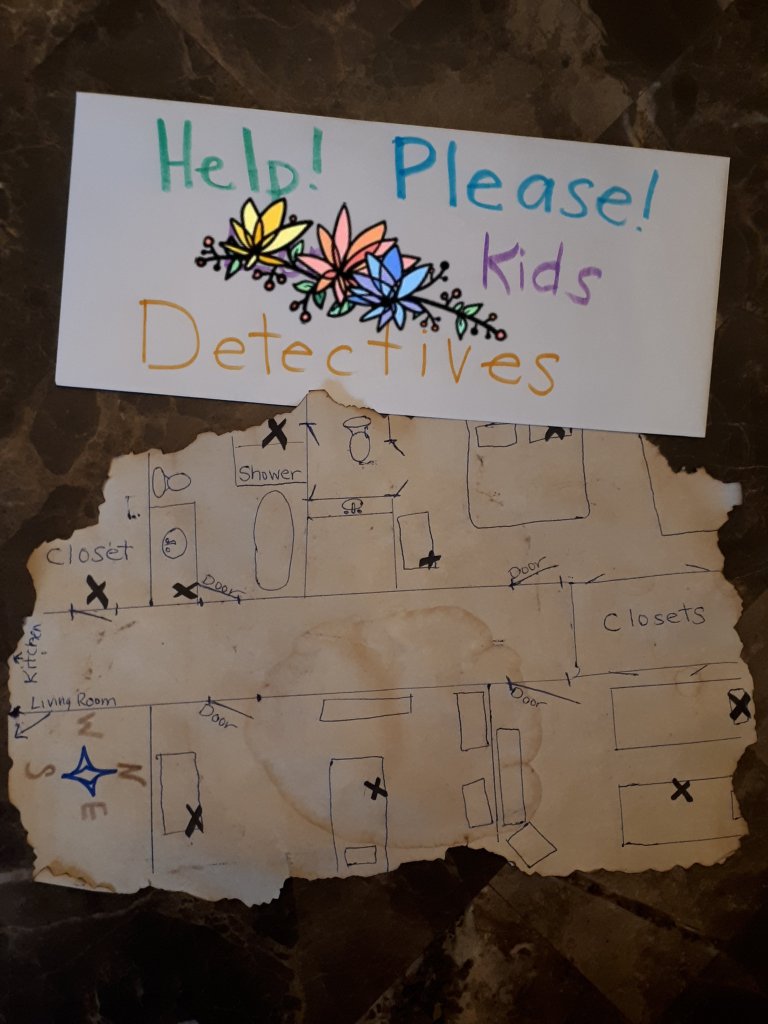 I had another appointment, so I left this with my husband. Lesson learned: when it’s your children’s first map put way more detail so they can figure out what it’s a map of!!! My husband was so frustrated because the kids kept coming in to ask him for help. I thought it was obvious, but I guess between it being their first map, and me not labeling very much they were far more inclined to give up. Anyway…