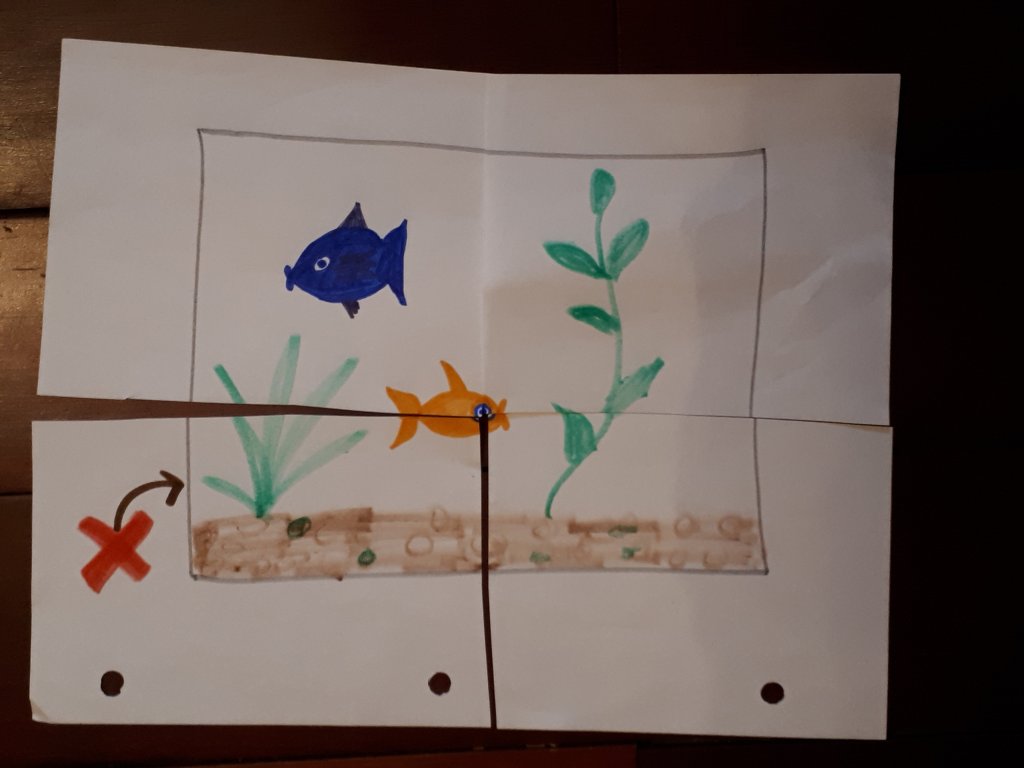 I decided on the fish tank. Even if I didn’t do a great job, she still couldn’t be too confused about what it could be. Then I cut it into four for her to puzzle together. She absolutely loves puzzles!