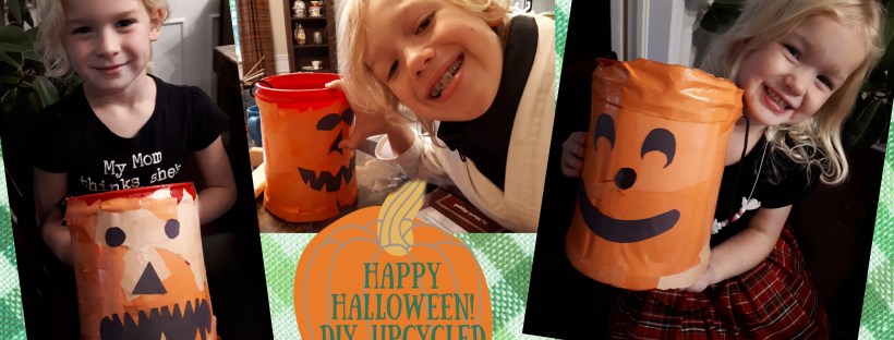 Halloween is this weekend! WooHoo! While this year may look very different out there on the street, we’re still going to give Trick-or-Treating a go. We always give the kids some reusable shopping bags for their candy, but this year we’re going to DIY our own Halloween Bags. The idea is to reuse some of the Costco coffee cans we have lying around. Upcycle, if you will. So here goes…
