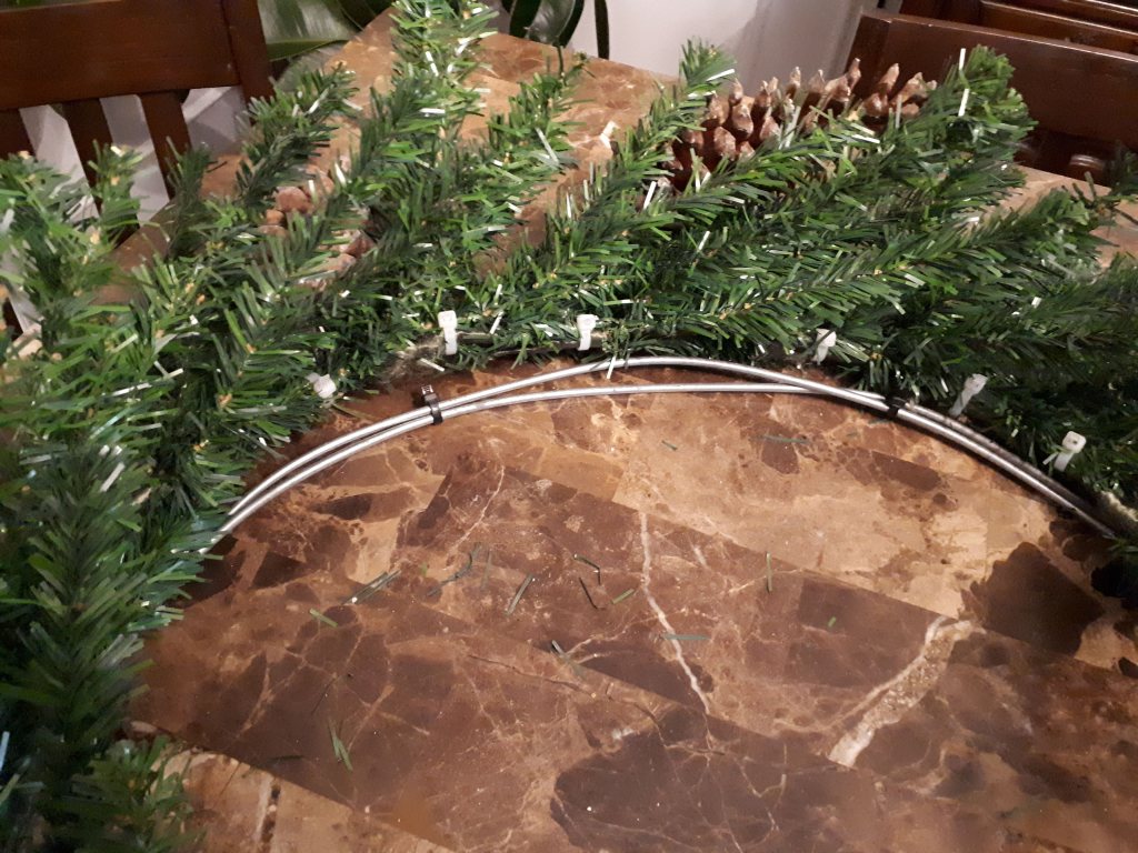 6: Zip tie the wreath to the wire.