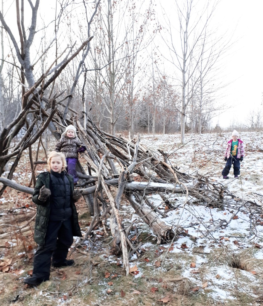 This is such a simple thing to do, but the kids love it so much. The bonus for us is that in the forest by our house there are two structures: a teepee and a wigwam. They’re not huge or authentic, but boy are they fun. The kids practiced much of what they had learned over the weeks, having battles, using tools, gathering food…it was awesome!