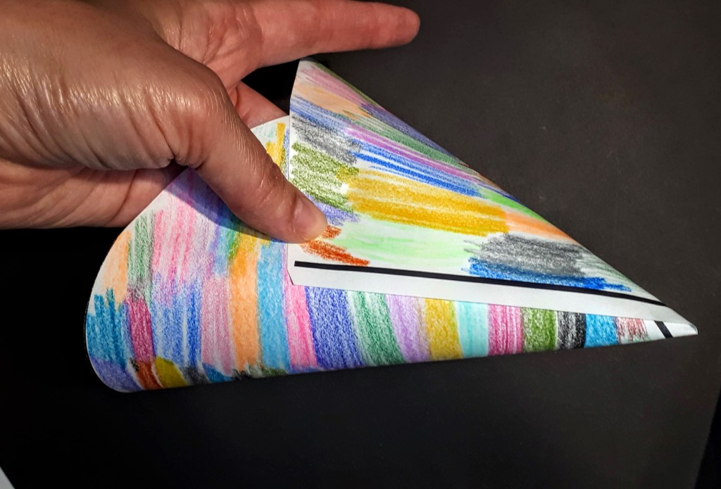 1. Round the corners off of one long side of the paper with scissors. This is just to give you a better idea of what shape the hat will end up in. You don’t want to decorate too much of the paper that isn’t going to be used.