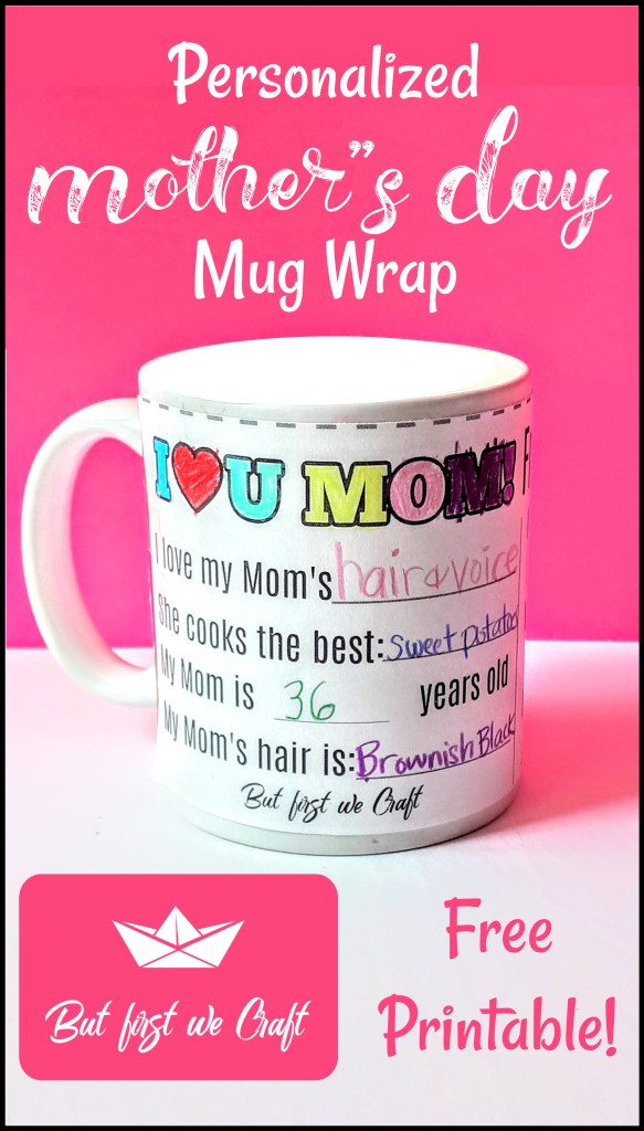 Mother’s Day is in 9 days. Are you shocked? Horrified? Stumped? Well, But First We Craft has got you covered with this adorable Free Printable Personalized Mug Wrap! All you have to do is download, print, help your precious little one(s) to fill it out and tape it around a mug when you’re bringing Mommy her morning cup of tea or coffee! It’s as simple as that. You will love the answers you get to these questions!