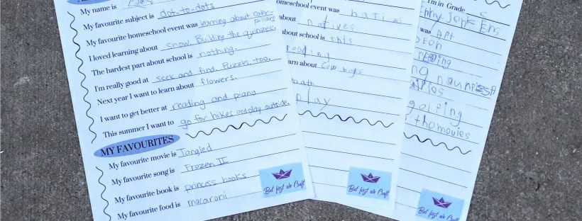 Included on their display board will be a little year-end summary (see? here we are! 😉). The older two (grade 4 and SK) read and wrote their own answers (with spelling help from me), and then I filled in the JK’s answers. We filled in half today, and we’ll do the other half tomorrow (and count it as printing🙌), and assemble our boards. I thought you guys might like this printable, too, because it’s a nice record of how your children were feeling at the end of the year.