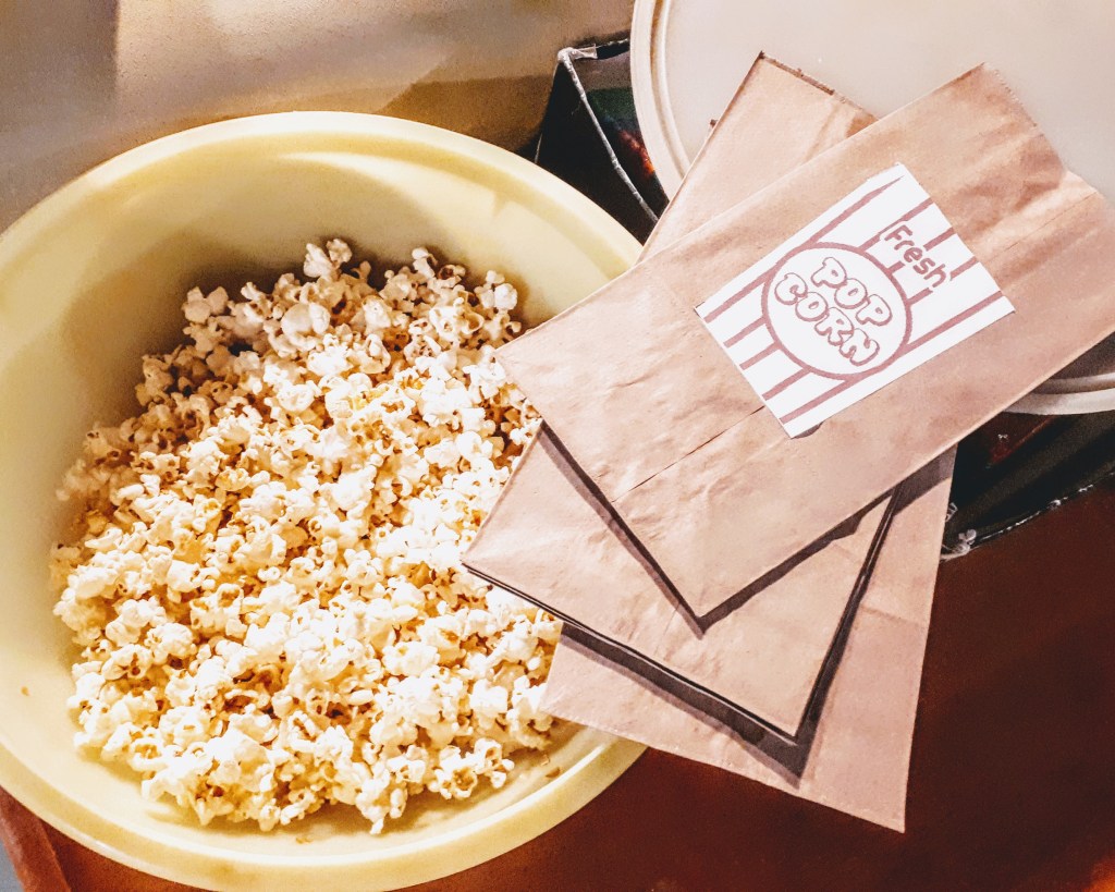 Also, if you go to the end of this blog post you will find the free printable versions of most of the materials (tickets, popcorn bag labels, and signs) I used!